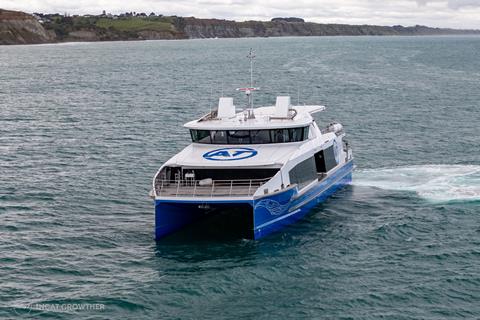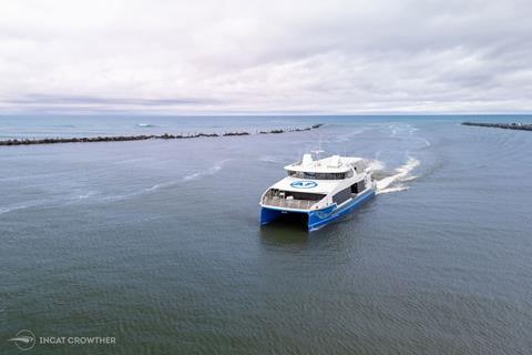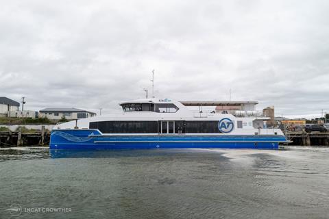 Designed by digital shipbuilder Incat Crowther, built by Q-West Boat Builders with systems integration by Hamilton Jet, the operationally flexible 32-metre vessel is the first in a fleet of two new electric hybrid fast ferries that will be operated by Fullers360 for Auckland Transport.