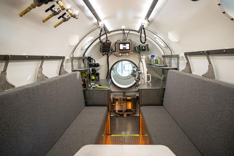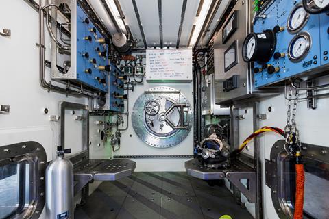 Vanguard will be operated at ambient pressure, where the pressure inside matches the pressure outside. This is like a diving bell saturation system, where the compartment a crew lives in is equal to the pressure at which they will dive. The key difference is Vanguard will be mounted to the seabed rather than needing to be repeatedly deployed and recovered from the water by a dive support vessel.